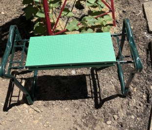 This is a soft and clever kneeler, made from sturdy steel tubes, with a raised platform and accessible pockets on the sides to place your tools.